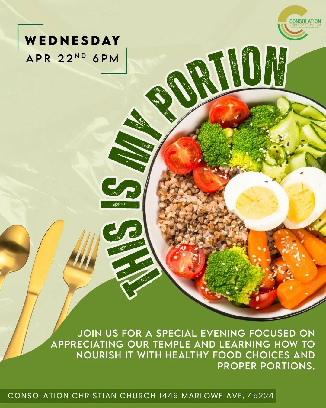 Join us for a special evening focused on appreciating our temple and learning how to nourish it with healthy food choices and proper portions.