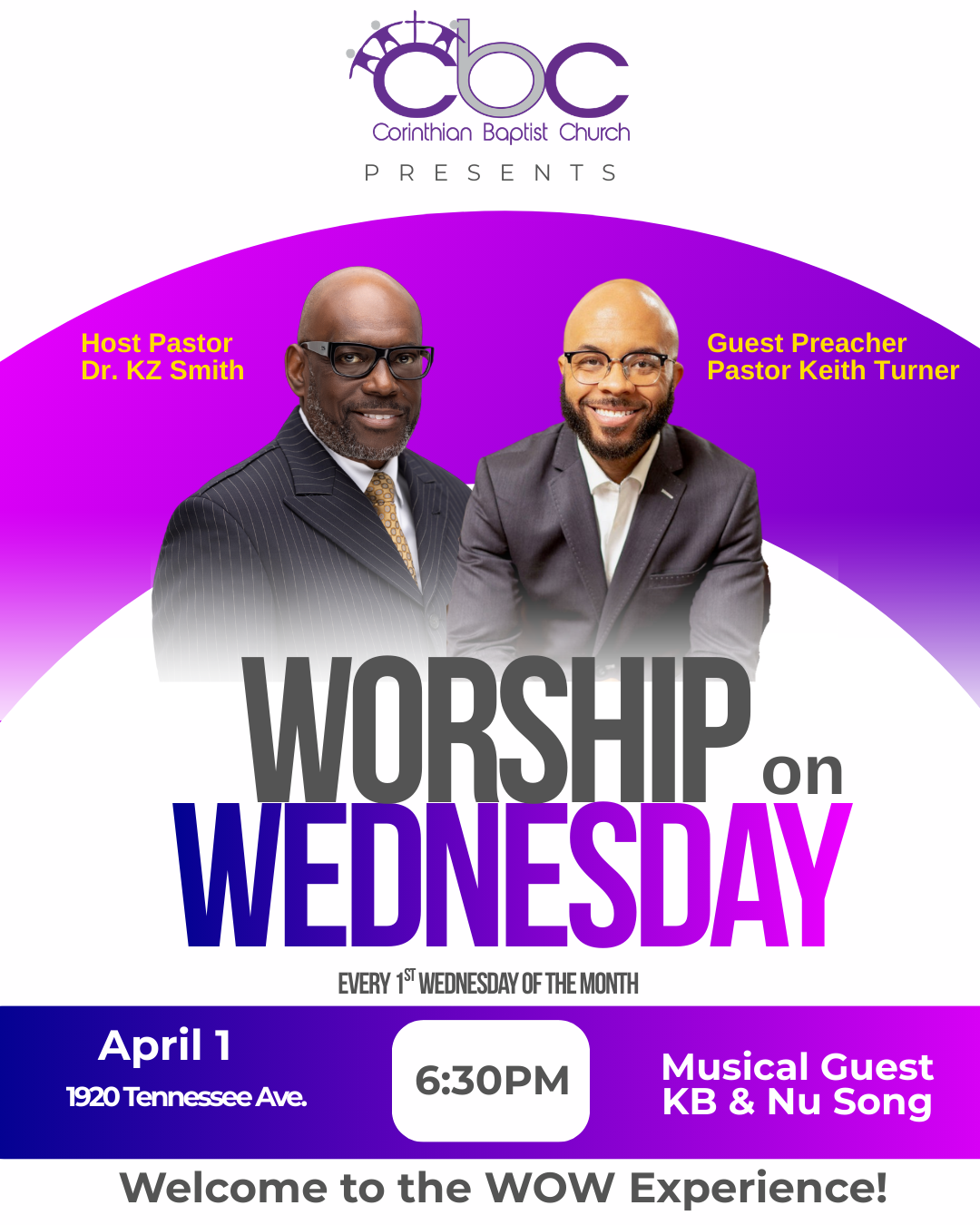 On Wednesday, April 1, our Pastor has been invited to bring the Word during Worship on Wednesday at Corinthian Baptist Church.